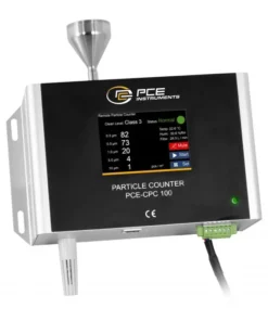 Máy đếm hạt PCE-CPC100 là bộ đếm hạt tiên tiến cho phép đo thời gian thực chính xác trong phạm vi từ 0, 3 μm đến 10 μm để cung cấp bức tranh toàn diện về chất lượng không khí. Kết quả được trình bày theo hai đơn vị, số trên 28,3 lít hoặc số trên mét khối. Việc lấy mẫu không khí được thực hiện bằng máy bơm bên trong. Khi các hạt đi qua nguồn sáng (laser), hiện tượng tán xạ ánh sáng xảy ra; ánh sáng tán xạ được chuyển đổi thành tín hiệu điện (xung) bằng đầu dò quang điện, và các hạt càng lớn thì tín hiệu xung càng lớn.