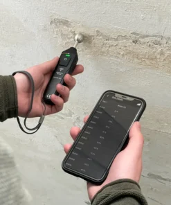 Có thể thiết lập kết nối với máy đo độ ẩm tường thông qua ứng dụng miễn phí. Ngay sau khi kết nối được thiết lập, giá trị đo hiện tại sẽ được hiển thị bằng máy đo độ ẩm tường. Dữ liệu đã ghi có thể được xuất dưới dạng .csv và .pdf sau khi đo. Điều này có nghĩa là dữ liệu đo bằng máy đo độ ẩm có thể được xử lý thêm.
