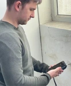 Máy đo độ ẩm tường PCE-PMI 1BT có dải đo là 0,0…. 100,0%. Để đo, đầu bi được đặt trên đối tượng thử nghiệm bằng máy đo độ ẩm trên tường. Điều này đảm bảo phép đo không phá hủy với máy đo độ ẩm tường. Do đó, máy đo độ ẩm tường được sử dụng, ví dụ, để kiểm tra tại chỗ các tòa nhà, gỗ và các bề mặt khác.