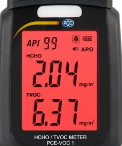 Máy đo Formaldehyde PCE-VOC1 là máy đo hợp chất hữu cơ dễ bay hơi (VOC) và formaldehyde (HCHO) cầm tay hoặc máy dò rò rỉ khí dành cho các ứng dụng giám sát chất lượng không khí trong nhà (IAQ). Máy đo VOC dễ sử dụng này lý tưởng để đo tổng lượng hợp chất hữu cơ dễ bay hơi (TVOC) và formaldehyde (HCHO) trong nhà, văn phòng, nhà máy, phòng thí nghiệm, khách sạn, trường học và các môi trường trong nhà khác. Pin lithium-polymer (LiPo) có thể sạc lại lâu dài của máy đo VOC và bộ đổi nguồn/bộ sạc 9V đi kèm đảm bảo việc giám sát IAQ không bị gián đoạn.