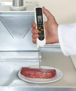 Nhiệt kế hồng ngoại thực phẩm PCE-IR100 đóng một vai trò quan trọng trong việc lưu trữ và vận chuyển thực phẩm dễ hỏng. Nhiệt kế thực phẩm kỹ thuật số của PCE Instruments là nhiệt kế hồng ngoại với đầu dò thâm nhập có thể gập lại được thiết kế đặc biệt để kiểm soát nhanh chóng và hiệu quả nhiệt độ bề mặt và lõi của thực phẩm. Với sự trợ giúp của nhiệt kế thực phẩm hồng ngoại, người dùng có thể thực hiện kiểm soát chất lượng đơn giản đối với các sản phẩm thực phẩm và kiểm tra xem quy trình xử lý có tuân thủ tiêu chuẩn HACCP hay không. Khái niệm chất lượng HACCP (Phân tích mối nguy và điểm kiểm soát quan trọng) đã được tạo ra để ngăn ngừa rủi ro vệ sinh trong quá trình sản xuất và xử lý thực phẩm, đồng thời đảm bảo chất lượng, an toàn và thời hạn sử dụng của thực phẩm.