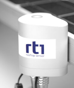 The rugged housing of RT1 simply fits to the corner of a PV panel and contains the digital electronics. It also houses a sensor that reliably measures the incoming plane of array solar irradiance. The plug-in temperature sensor is easily attached to the back of the panel. RT1 is the perfect solution for monitoring the efficiency of commercial rooftop PV installations.